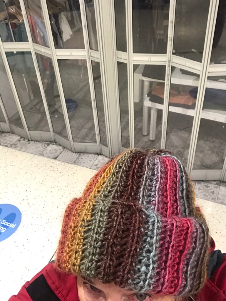New touque (aka beanie) Posted bykimbalinablogJune 3, 2020Posted inUncategorized I crocheted this myself Note the social distancing decal on the floor Share this:Share Click to share on Reddit (Opens in new window) Reddit