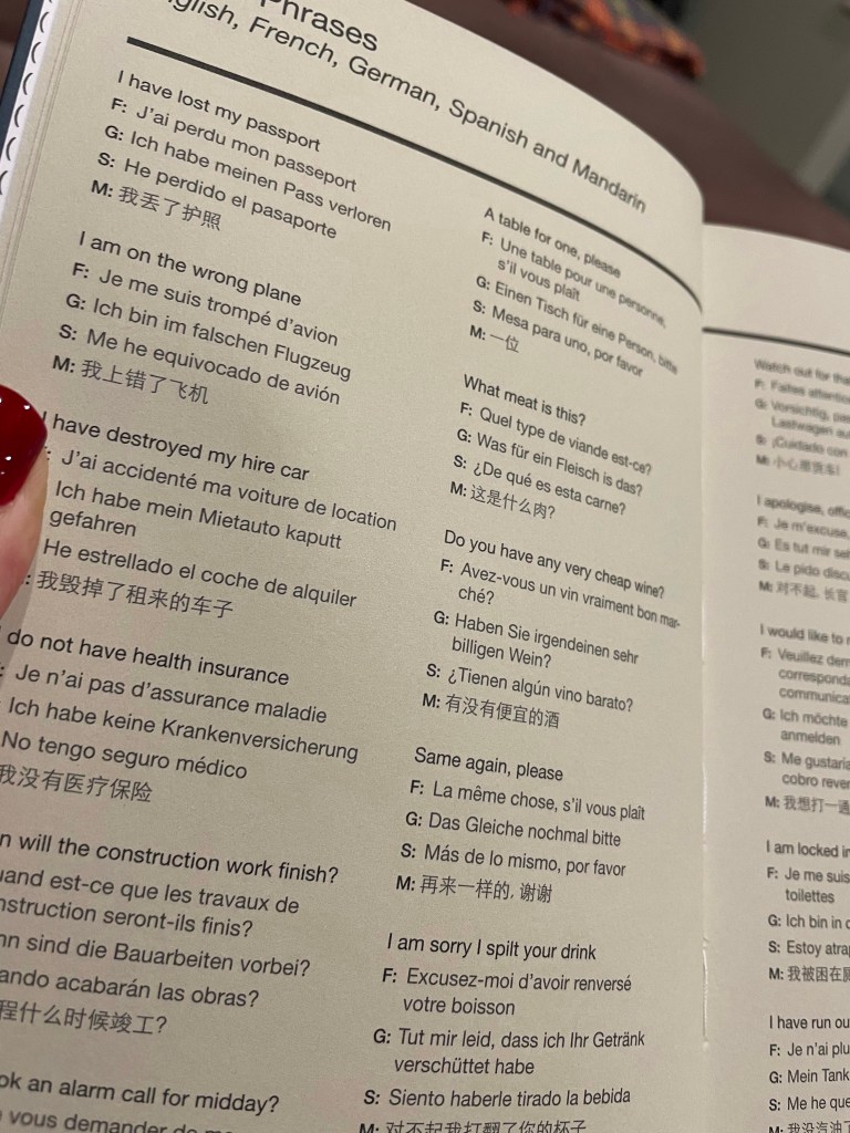 Notes when famous people died, demotivational quotes, (If not now, then whenever, Everything happens for a terrifyingly random reason) 😂 space to enter critical info like bin night and least favourite body parts, and useful phrases in other languages (pictured below)