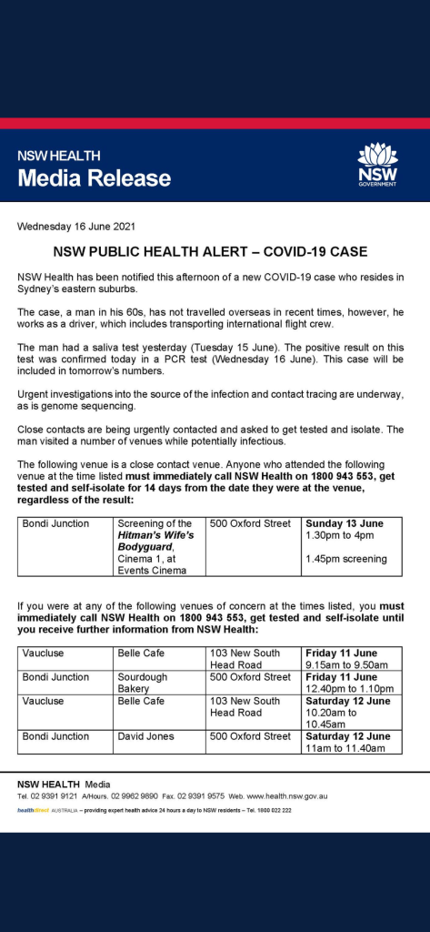 Works as a driver out at the airport for flight staff. Hopefully was vaxxed and is not too contagious. We were out of town so haven’t been to those places recently.