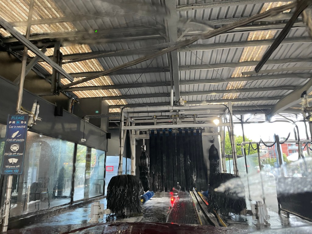 This is an intersection but not a corner. I’m waiting at the city’s longest light to cross the street to my car.